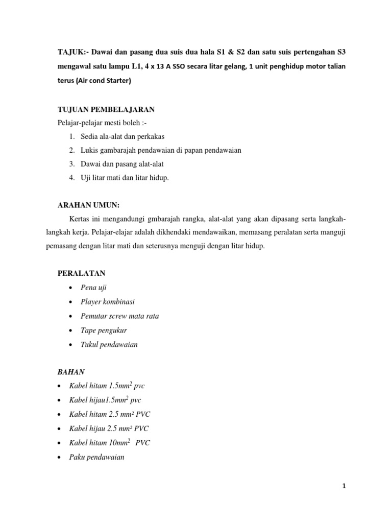 1 Padamkan lampukipas penghawa dingin apabila tidak digunakan atau keluar dari bilik untuk jangka. Melukis lakaran skematik dan pendawaian litar -. SELEPAS MELAKUKAN KERJA ELEKTRIK Kawasan Kerja Elektrik hendaklah dikemas dan dibersihkan dengan baik.